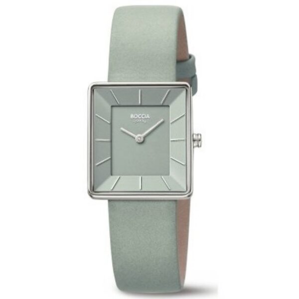 Die BOCCIA Titanium Damenuhr 3351-01 Grün steht für klare Formen, natürliche Eleganz und technisches Feingefühl. Ihr eckiges Gehäuse aus reinem Titan verleiht ihr ein modernes und zugleich dezentes Aussehen. Da Titan deutlich leichter als Stahl ist, spürt man die Uhr kaum am Handgelenk. Dieses Material ist perfekt für Frauen, die hohen Tragekomfort und einfachen Stil schätzen. Das grüne Armband aus Leder sorgt dabei für eine frische Note, die sowohl zu Freizeitkleidung als auch zu eleganten Looks passt. Das sanft schimmernde Zifferblatt in Grün fängt das Licht auf subtile Weise ein.