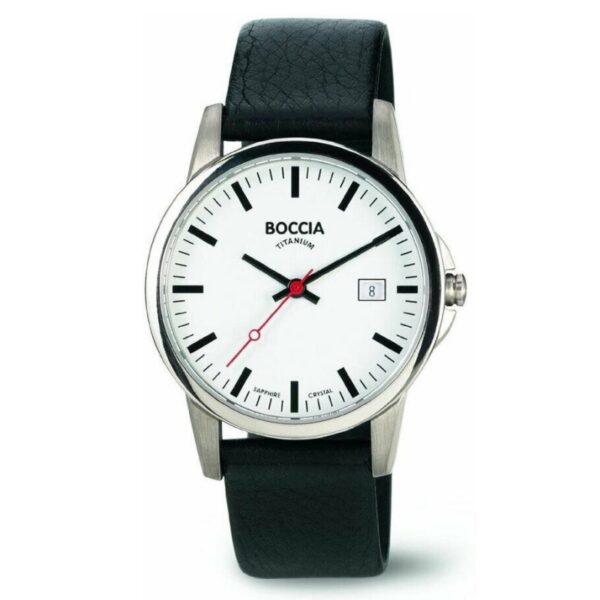 Die BOCCIA Titanium Damenuhr 521-03 Schwarz überzeugt durch ihr puristisches Design und hochwertige Materialien. Ihr mattes Titangehäuse mit einem Durchmesser von rund 35 mm wirkt modern und zugleich zeitlos. Titan ist nicht nur extrem leicht, sondern auch besonders hautfreundlich, antiallergisch und korrosionsbeständig – ein Vorteil, den viele Trägerinnen sofort spüren. Das schlichte weiße Zifferblatt mit einem roten Sekundenzeiger sorgt für einen klaren, harmonischen Look, der zu jedem Anlass passt.