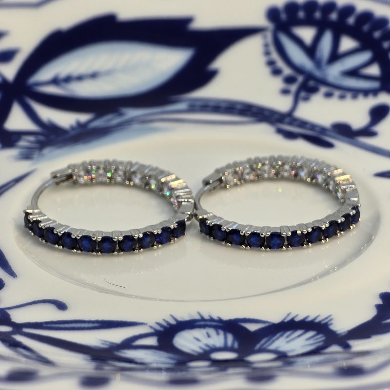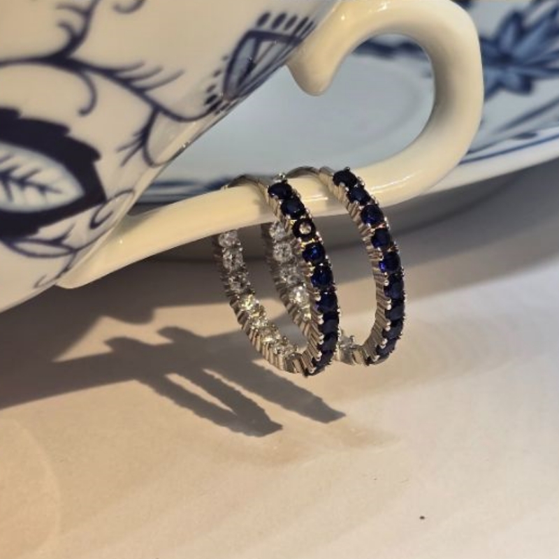 Diese rhodinierten Creolen gehören zur exklusiven Kollektion „Blue Elegance“. Die Kombination aus kühlem Silber und funkelnden Steinen unterstreicht feminine Eleganz und dezenten Luxus. Das klare, moderne Design macht sie zu einem vielseitigen Accessoire für jeden Stil.