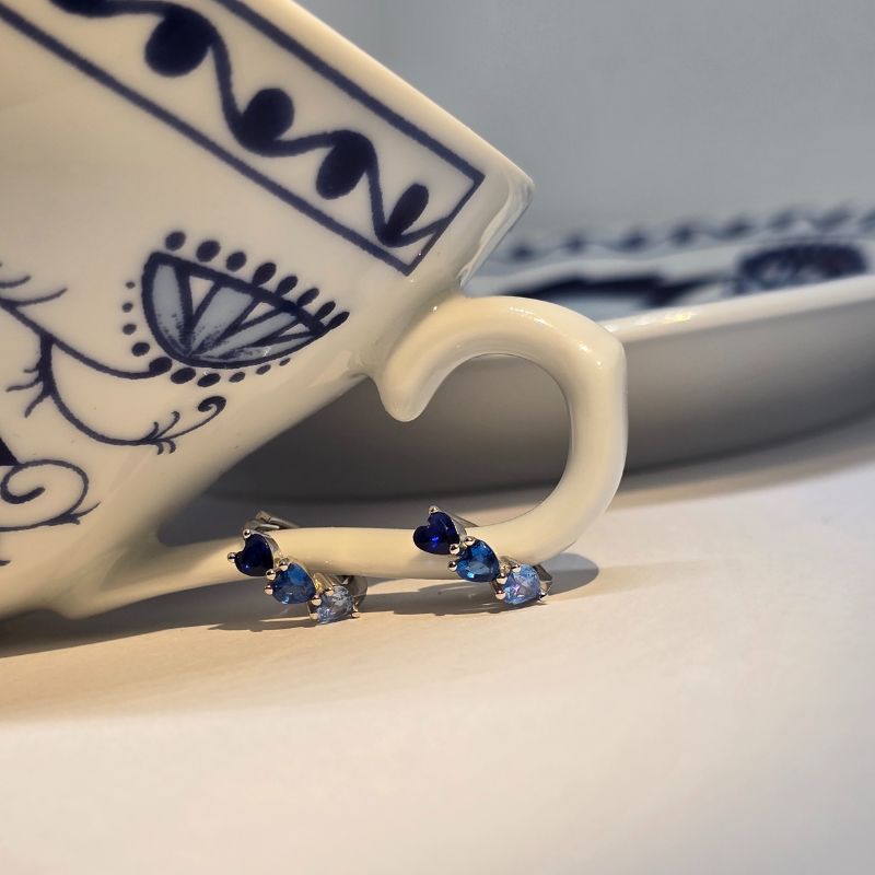 Sie passen perfekt zu eleganter Kleidung, aber auch zu modernen Alltagslooks. Das Besondere an diesen Ohrringen sind die tiefblauen Zirkonia Herz-Steine, die in präziser Handarbeit eingefasst wurden. Jedes Herz misst etwa 4 mm x 4 mm und funkelt mit einer intensiven, klaren Farbe. Die blauen Herzen symbolisieren Ruhe, Treue und emotionale Tiefe – Werte, die jede Frau gerne zum Ausdruck bringt.