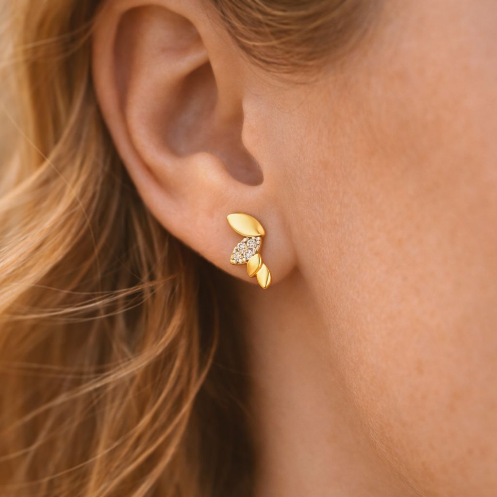 Natürliche Eleganz: Ohrstecker Gold 333 „Blattzauber”