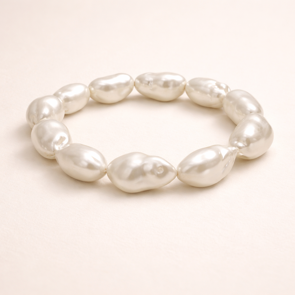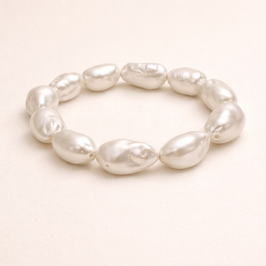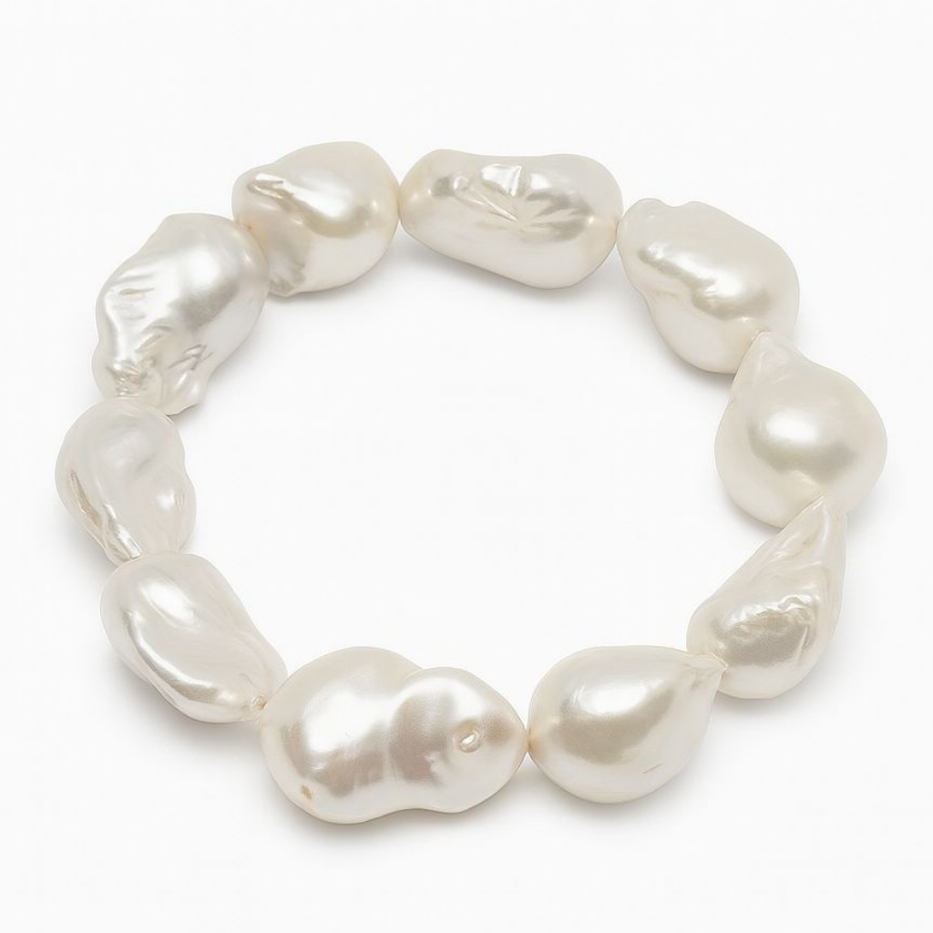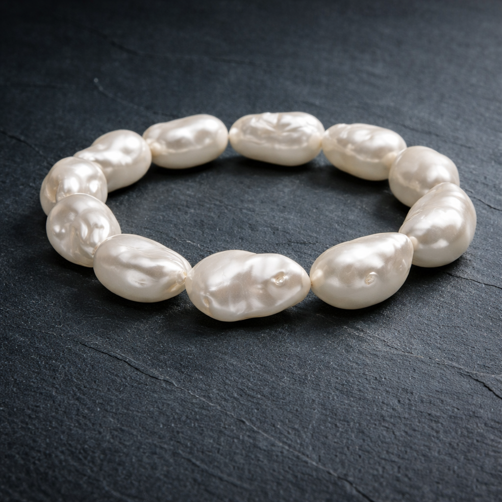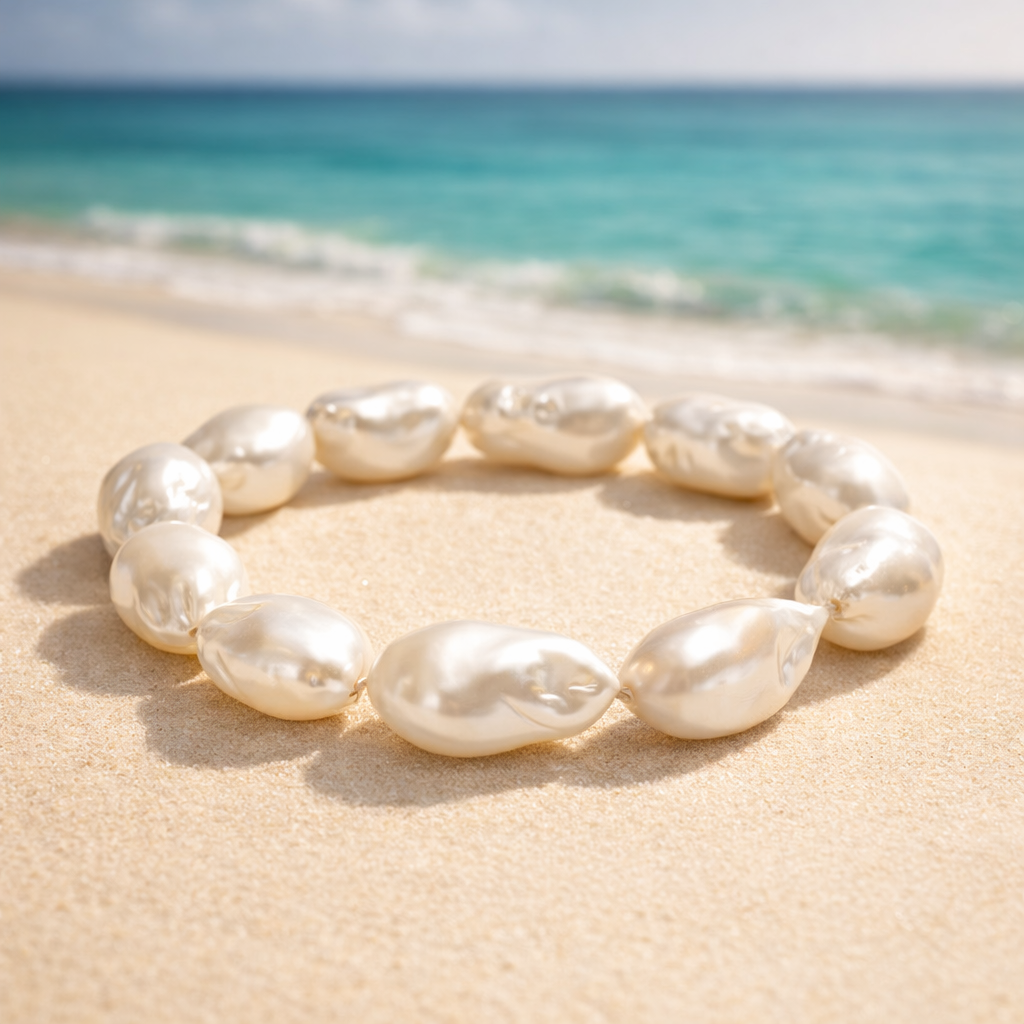 Im Perlenarmband „Meeressymphonie” kommen Barock Süßwasserzuchtperlen zum Einsatz. Diese Perlen wachsen frei und entwickeln dadurch asymmetrische Formen mit starkem Glanz. Gerade deshalb wirkt jede Perle wie ein eigenes Kunstwerk. Barockperlen sind begehrt, weil sie einzigartige Strukturen zeigen und zugleich Leben in jedes Schmuckstück bringen. Die Größen variieren zwischen 15 und 25 Millimetern, und so erhält das Armband seine besondere Tiefe. Auf diese Weise entsteht ein Design, das Natürlichkeit und Stil vereint.
