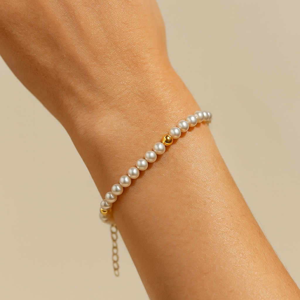 Perlenarmband Silber Vergoldet „Zarter Glanz“ – Eleganz am Handgelenk