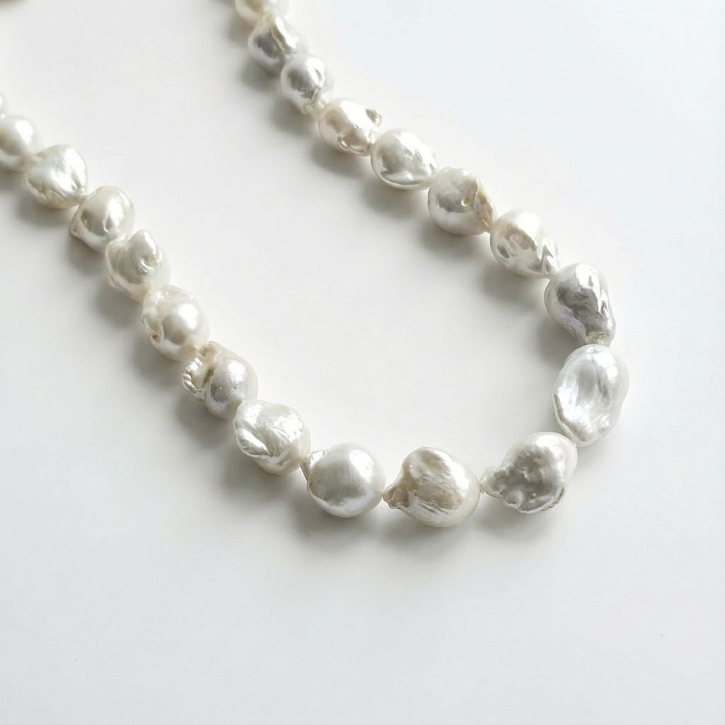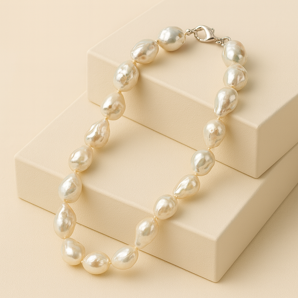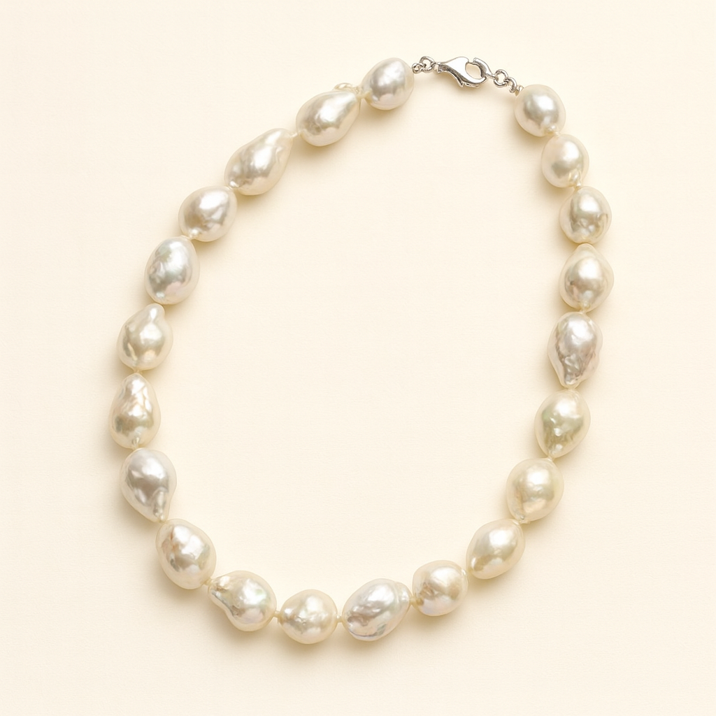 Die Perlenkette Silber „Meeressymphonie” zeigt Perlen von 15 bis 25 Millimetern. Jede Perle ist ein Unikat. Barock Süßwasserzuchtperlen entstehen ohne formende Schablonen, sodass sie frei wachsen können. Sie zeichnen sich durch organische Linien aus und tragen Spuren ihrer natürlichen Herkunft. Viele Menschen wählen Barockperlen, weil sie Individualität schätzen. Zudem wirkt jede Perle wie ein kleiner Tropfen aus Licht und Wasser und passt sowohl zu schlichten als auch zu eleganten Outfits. Die natürlichen Farbnuancen betonen jeden Look und verleihen ihm einen warmen, zarten Glanz. Dadurch entsteht ein Schmuckstück voller Charakter und Ausdruck.