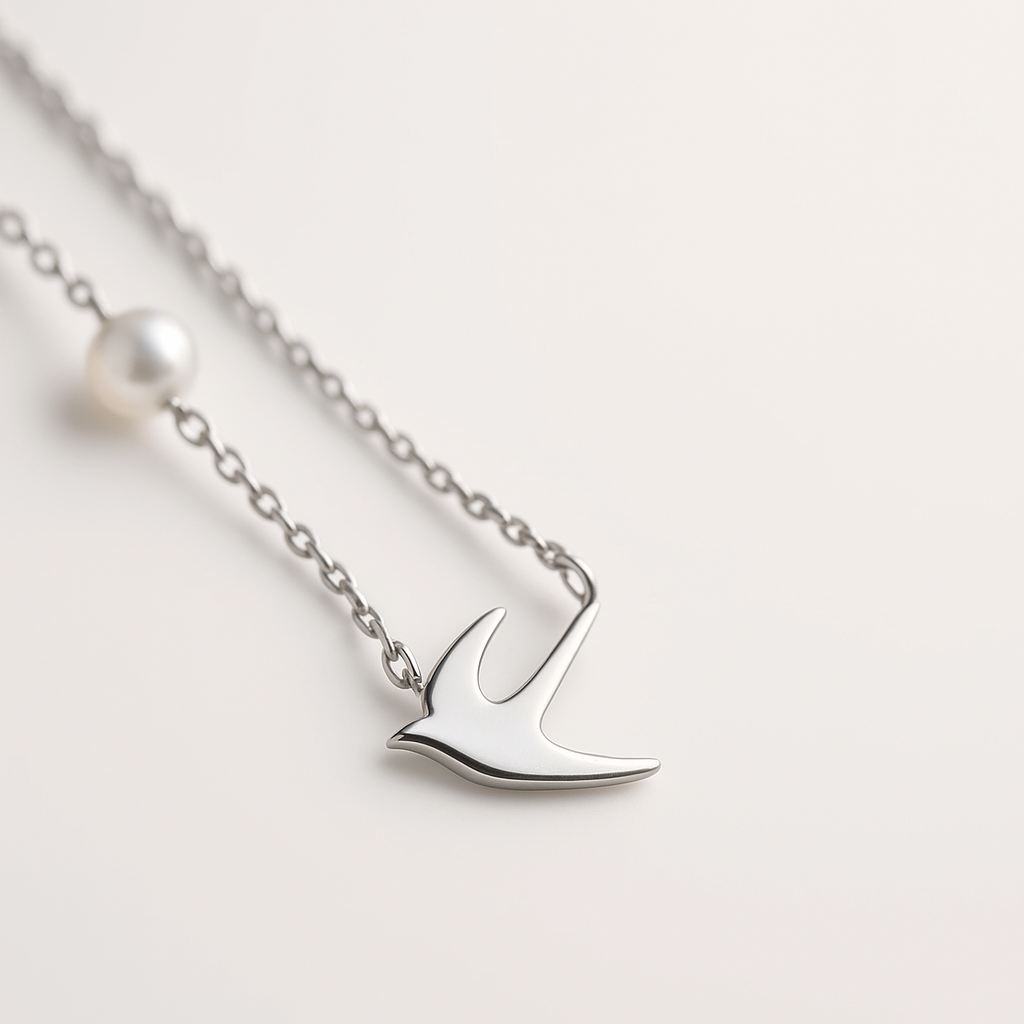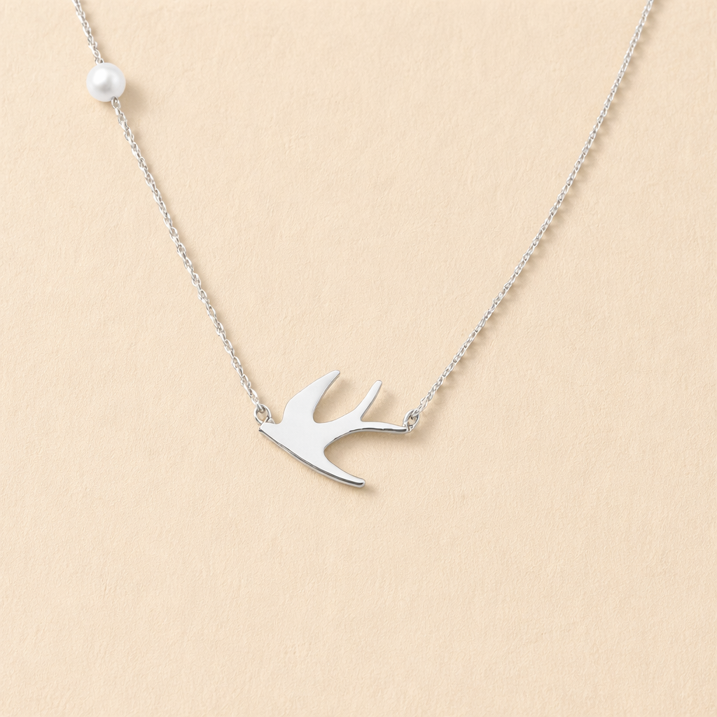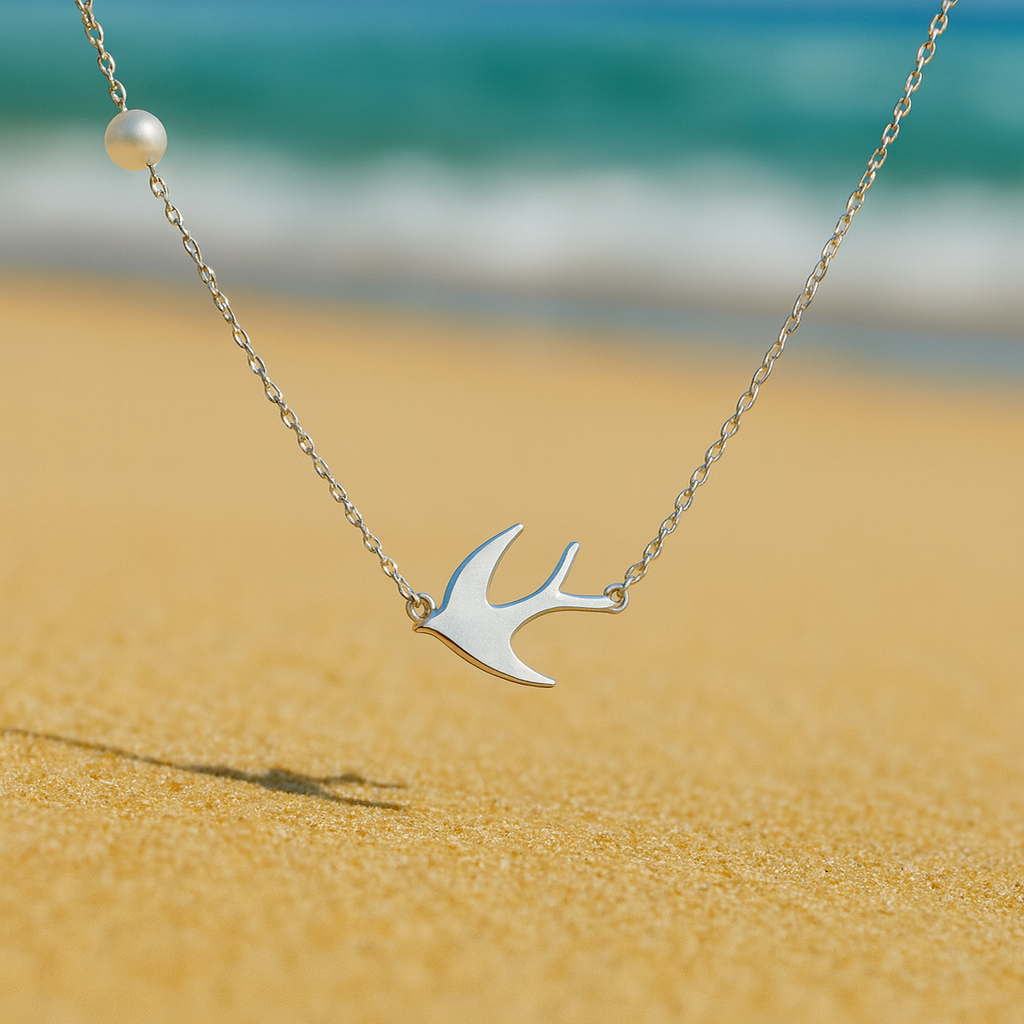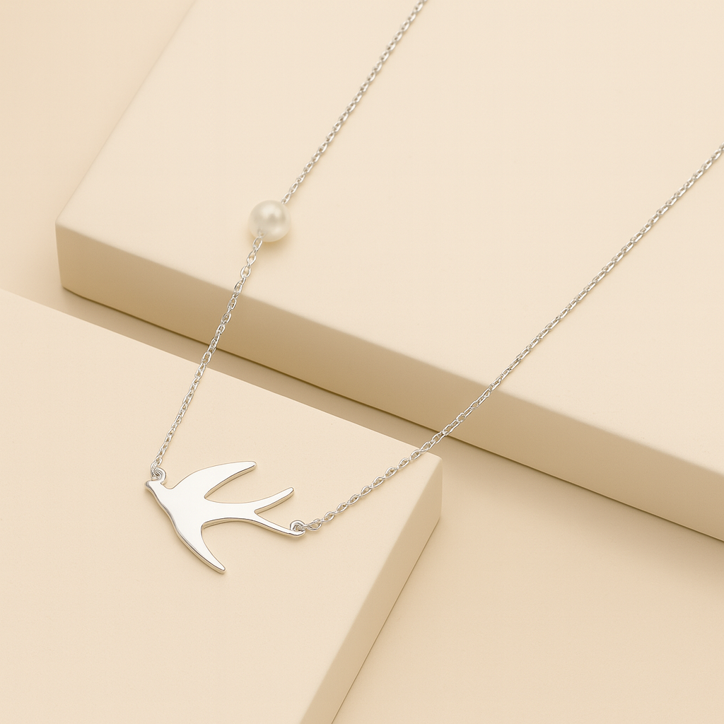 Perlenkette Silber „Schwalbe“ – maritime Eleganz mit Gefühl