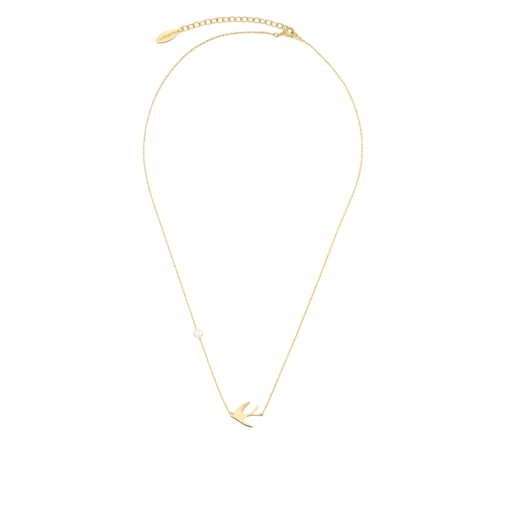 Perlenkette Silber Vergoldet „Schwalbe“ – goldener Glanz mit maritimer Seele