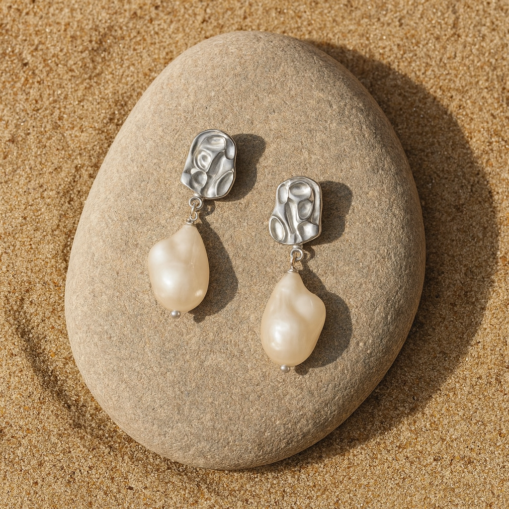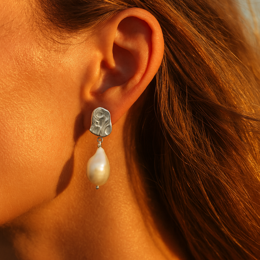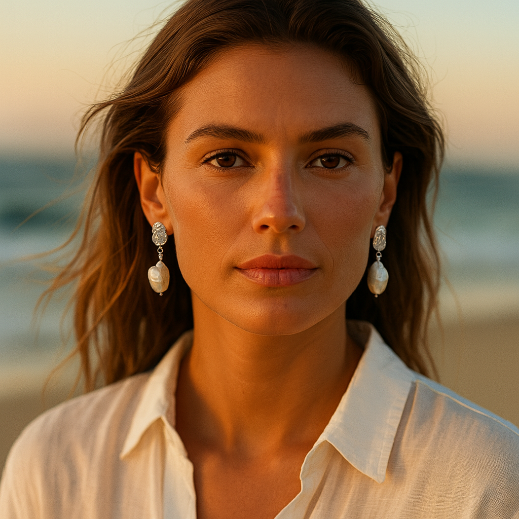 Perlenohrringe Silber „Ozeanpoesie” – Ohrringe mit warmem Meeresschimmer