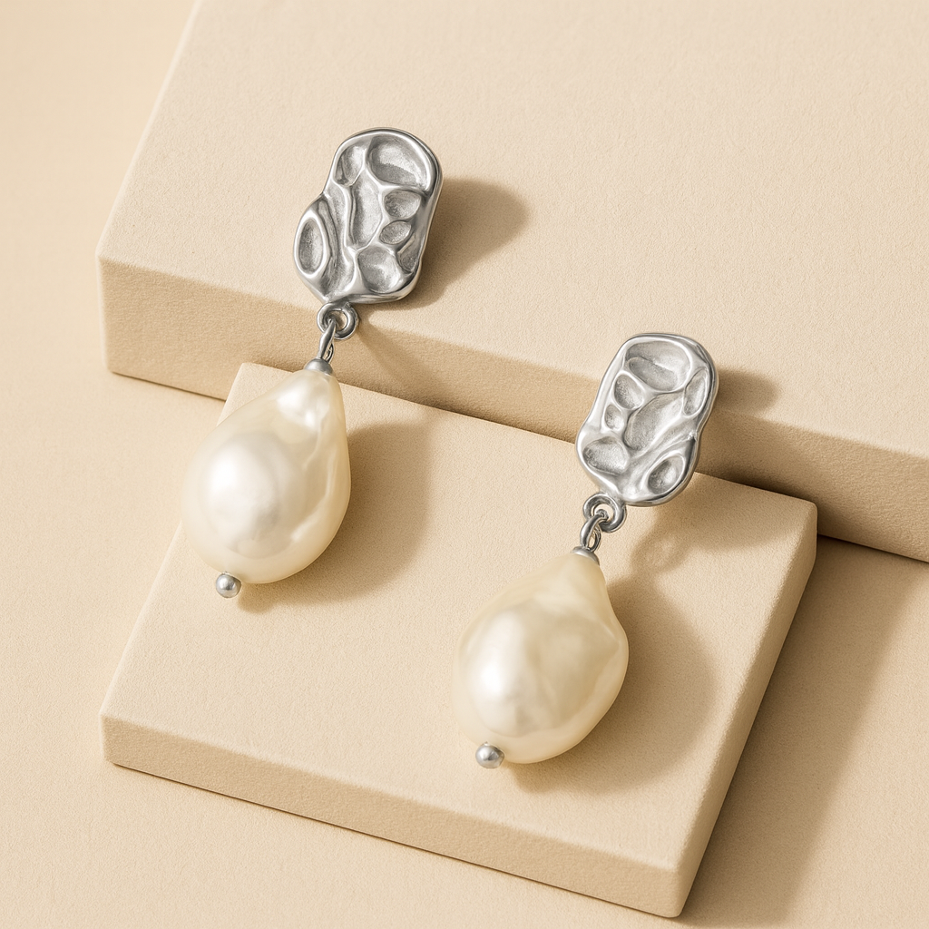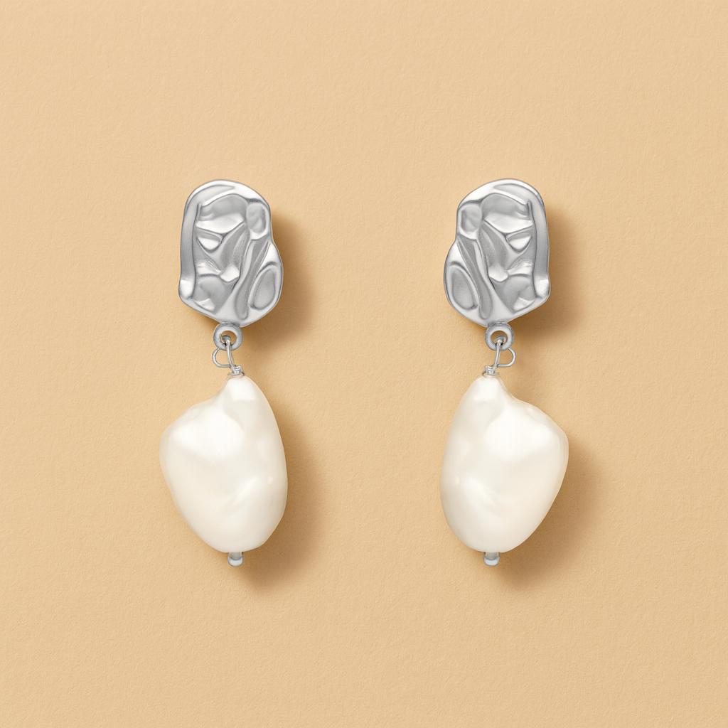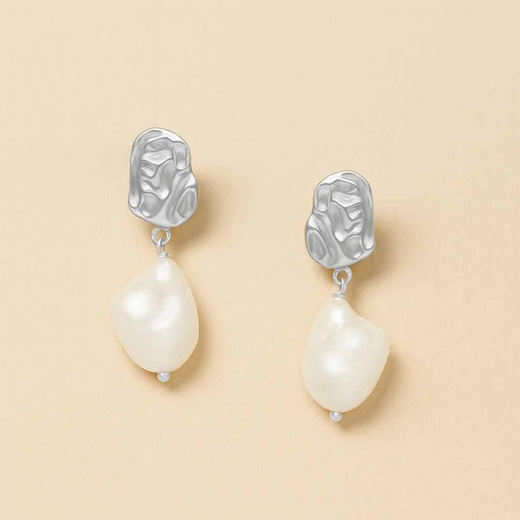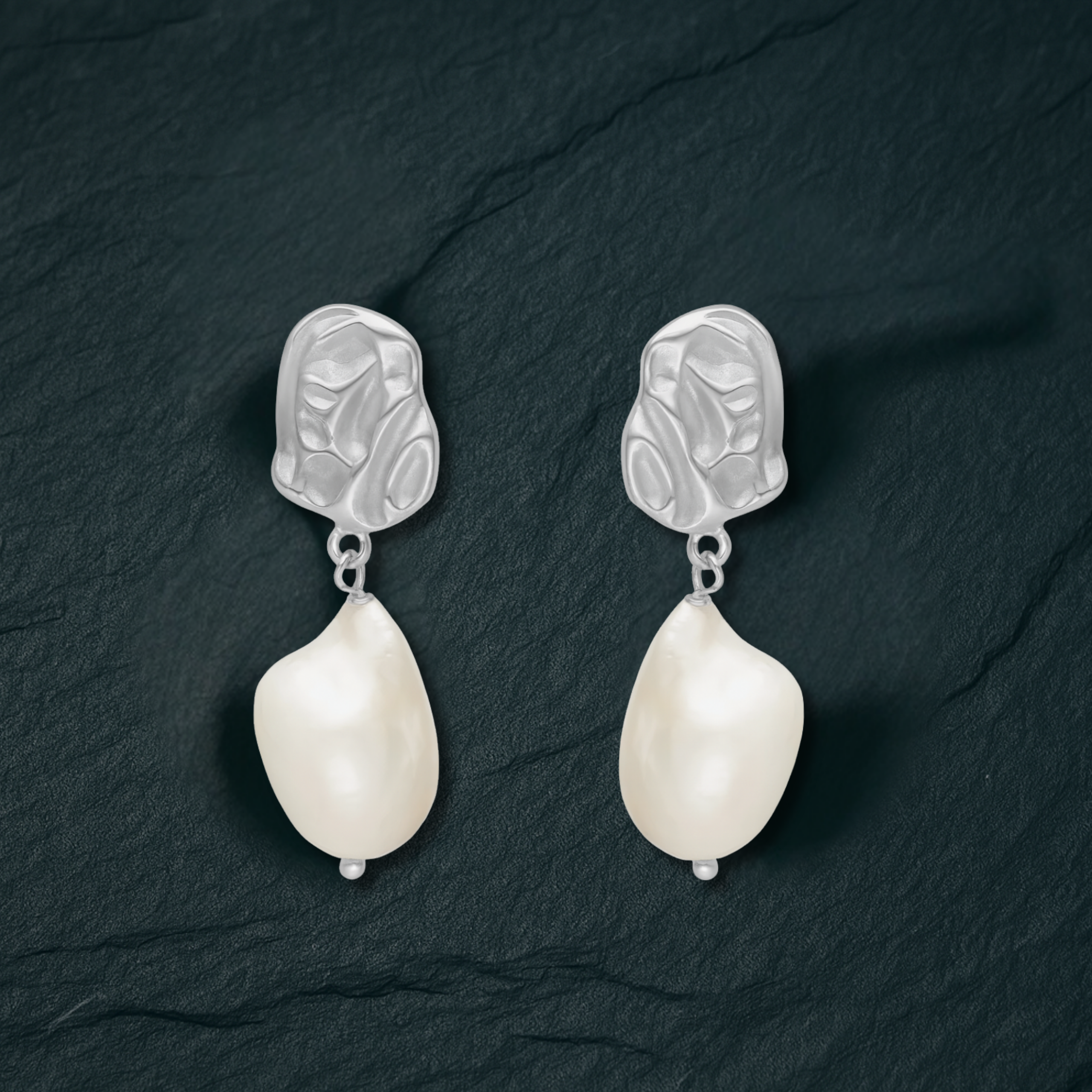 Perlenohrringe Silber „Ozeanpoesie” – Ohrringe mit warmem Meeresschimmer
