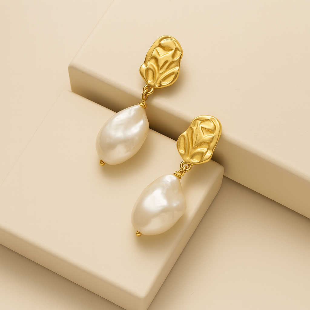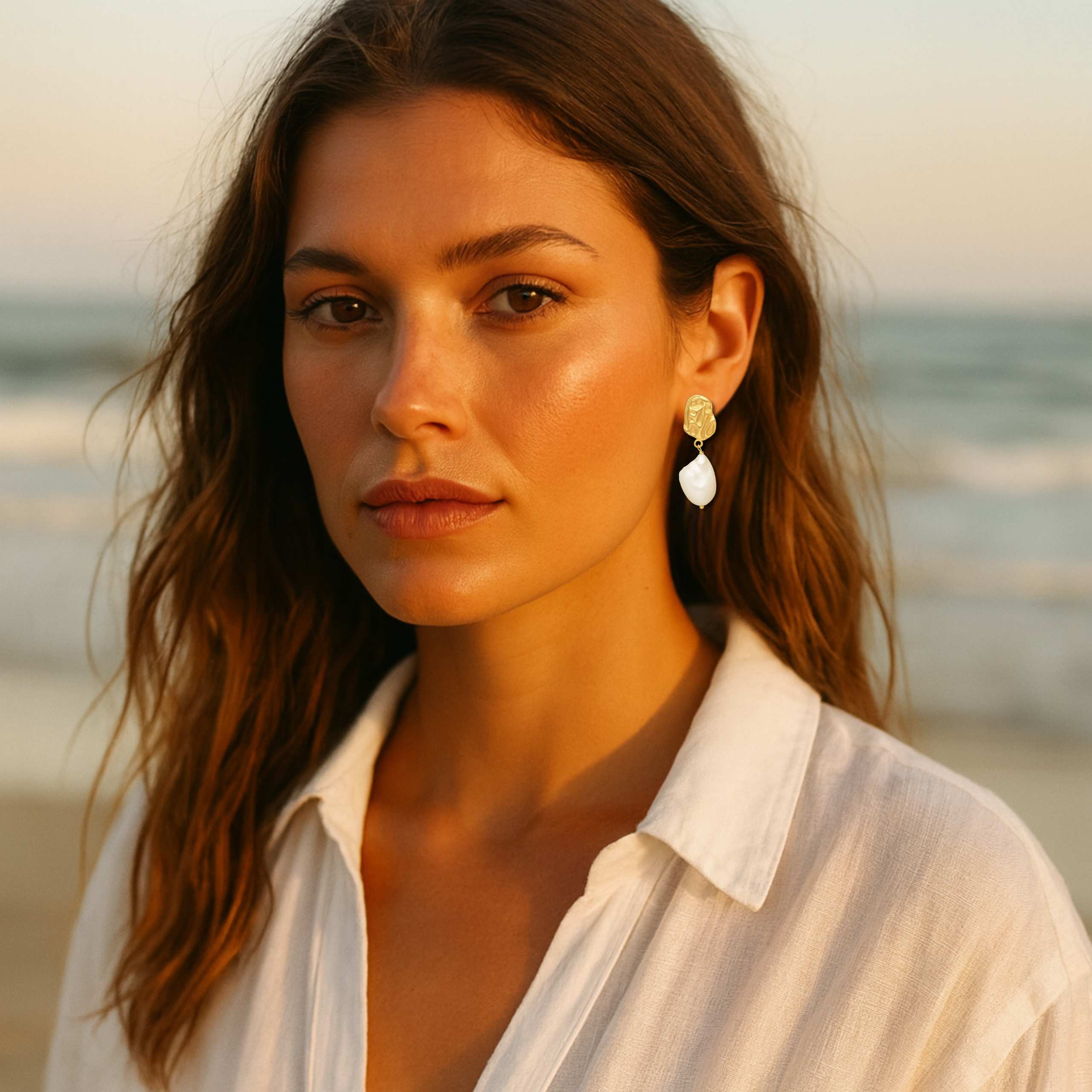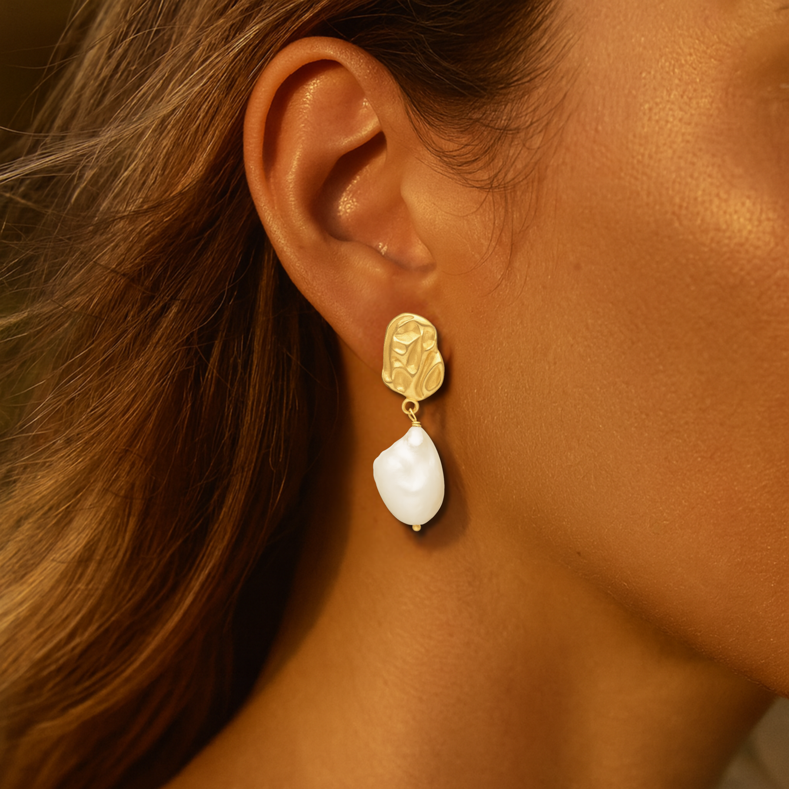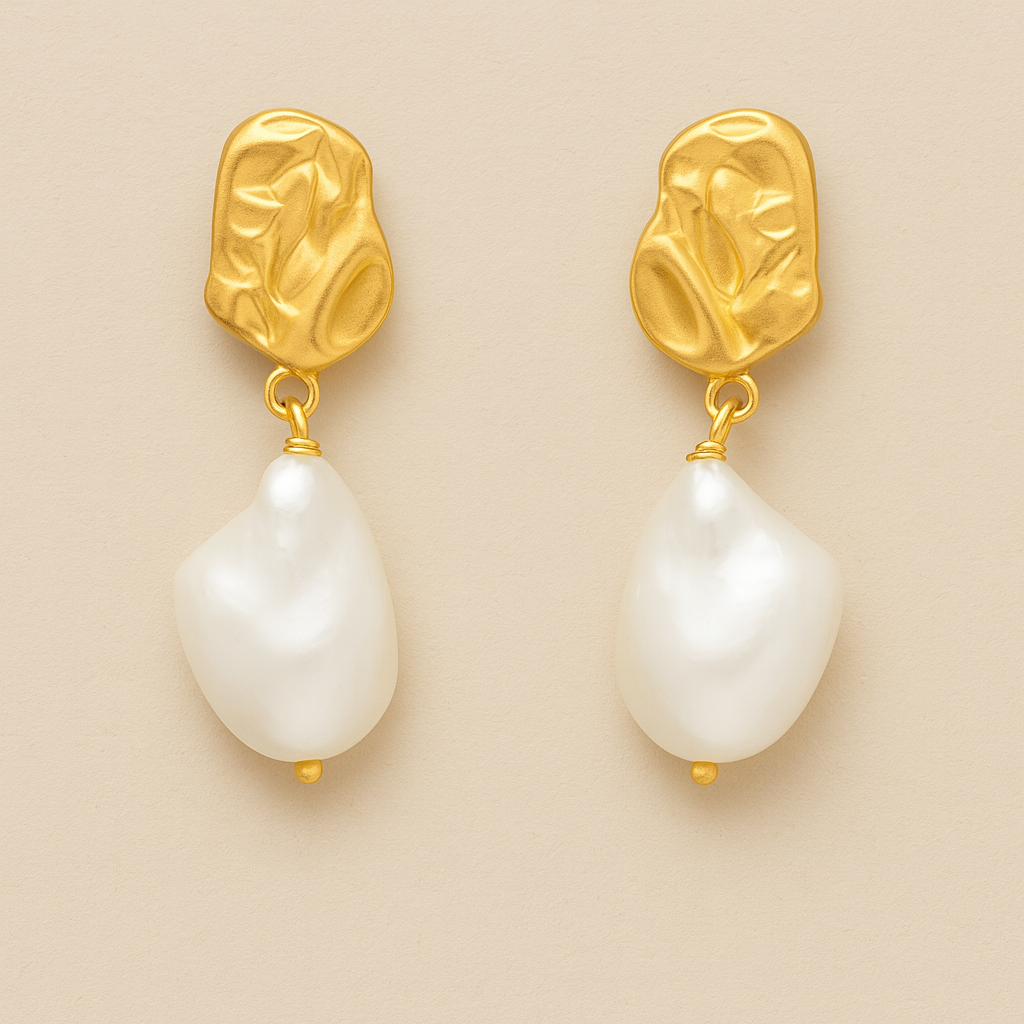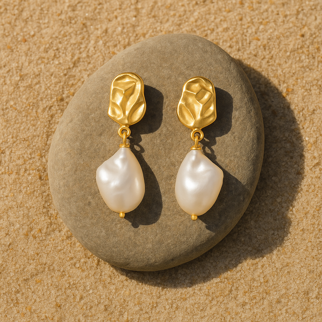 Perlenohrringe Silber Vergoldet „Ozeanpoesie” – Ein Hauch stiller Meeresmagie
