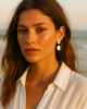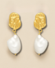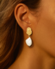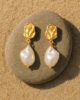 Die Perlenohrringe Silber Vergoldet „Ozeanpoesie” zeigen warme Goldtöne und unterstreichen die organischen Linien. Die Perle ist natürlich, deshalb variiert jede Form leicht. Diese Variation schafft Einzigartigkeit und betont die poetische Wirkung. Weiterhin verleiht das 24-karätige Gold eine edle Note und legt sich zart über das Silber. Die Maße bleiben angenehm: Die Perle ist etwa 10 mal 20 Millimeter groß und die Breite des Anhängers beträgt 8 Millimeter. Somit entsteht ein feines Gleichgewicht zwischen Größe und Leichtigkeit. Diese Balance macht den Stil weich, klar und modern zugleich.