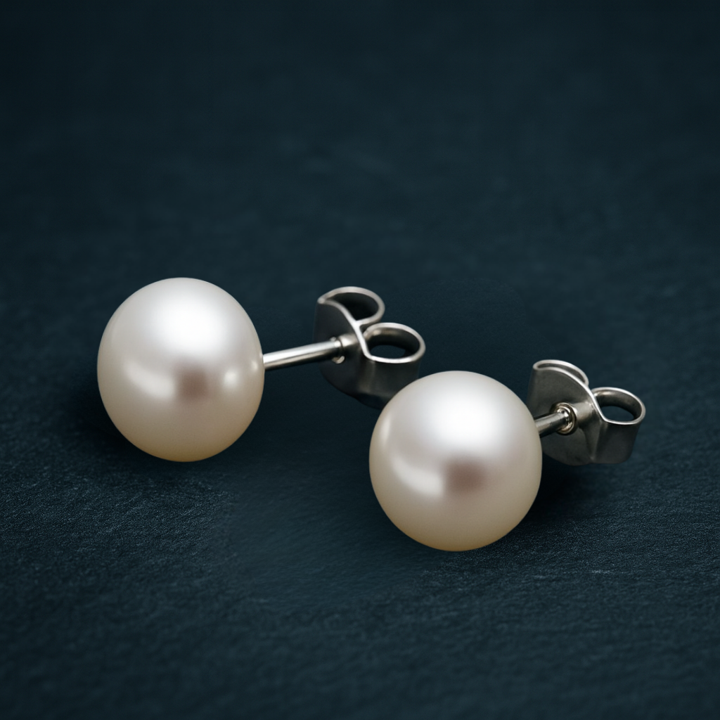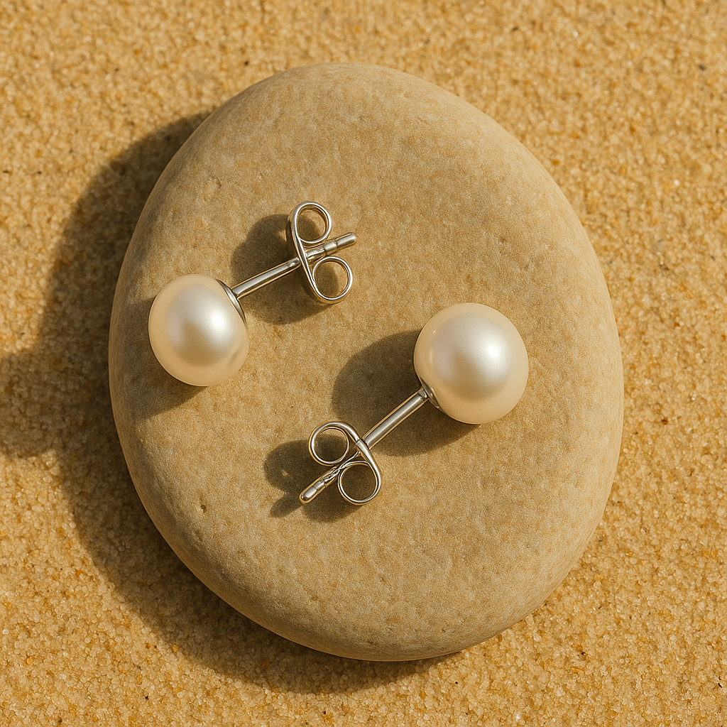 Perlenohrstecker Silber „Nordwind” 8mm – Klarheit, Glanz und zarte Natürlichkeit