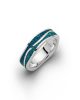 Schmaler, leicht geschwungener Ring „Meeresblau schmal“ wellenförmig gefüllt mit blauem Steinsand und gefasst in rhodiniertem und poliertem 925er Sterling-Silber.