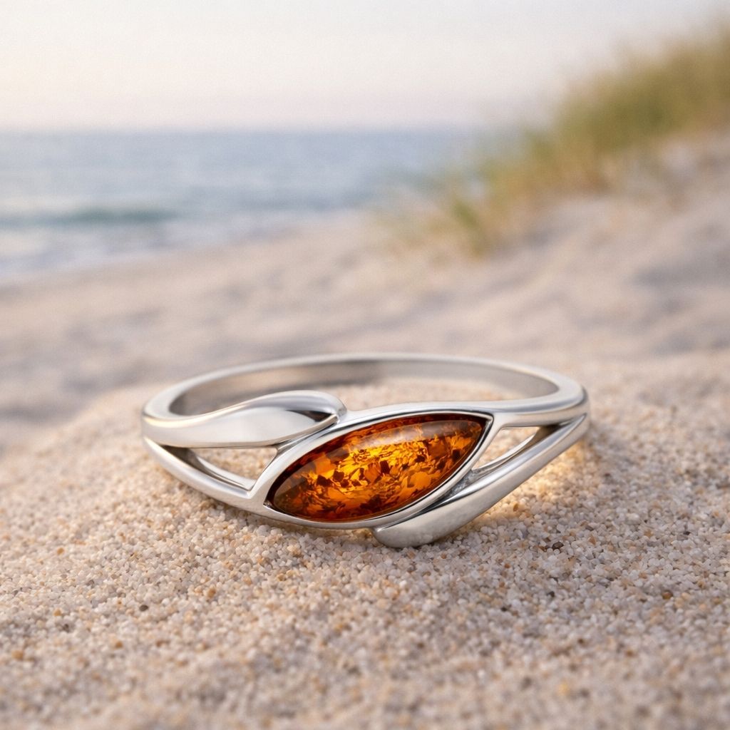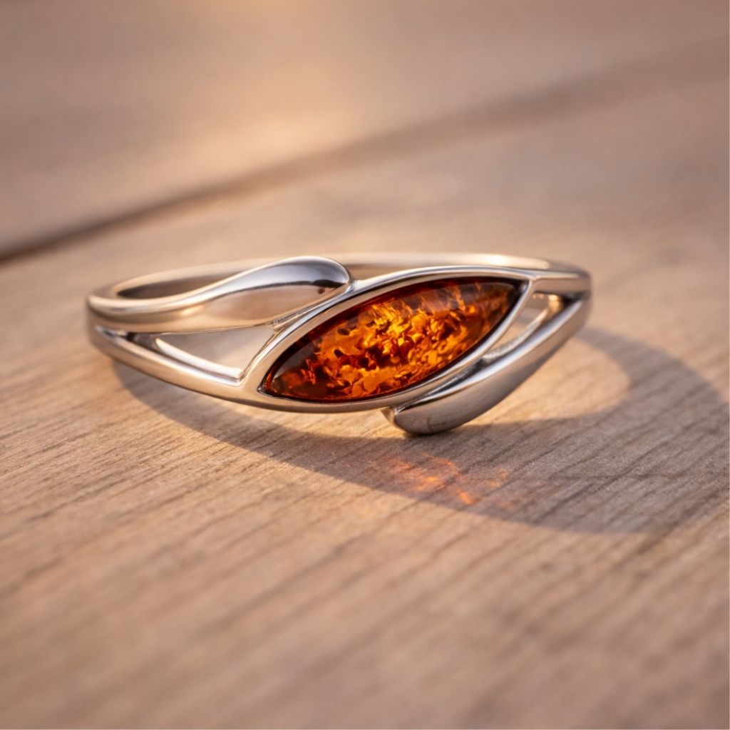 Zeitlose Harmonie: Der Ring Silber 925 rhodiniert Bernstein „Balans“