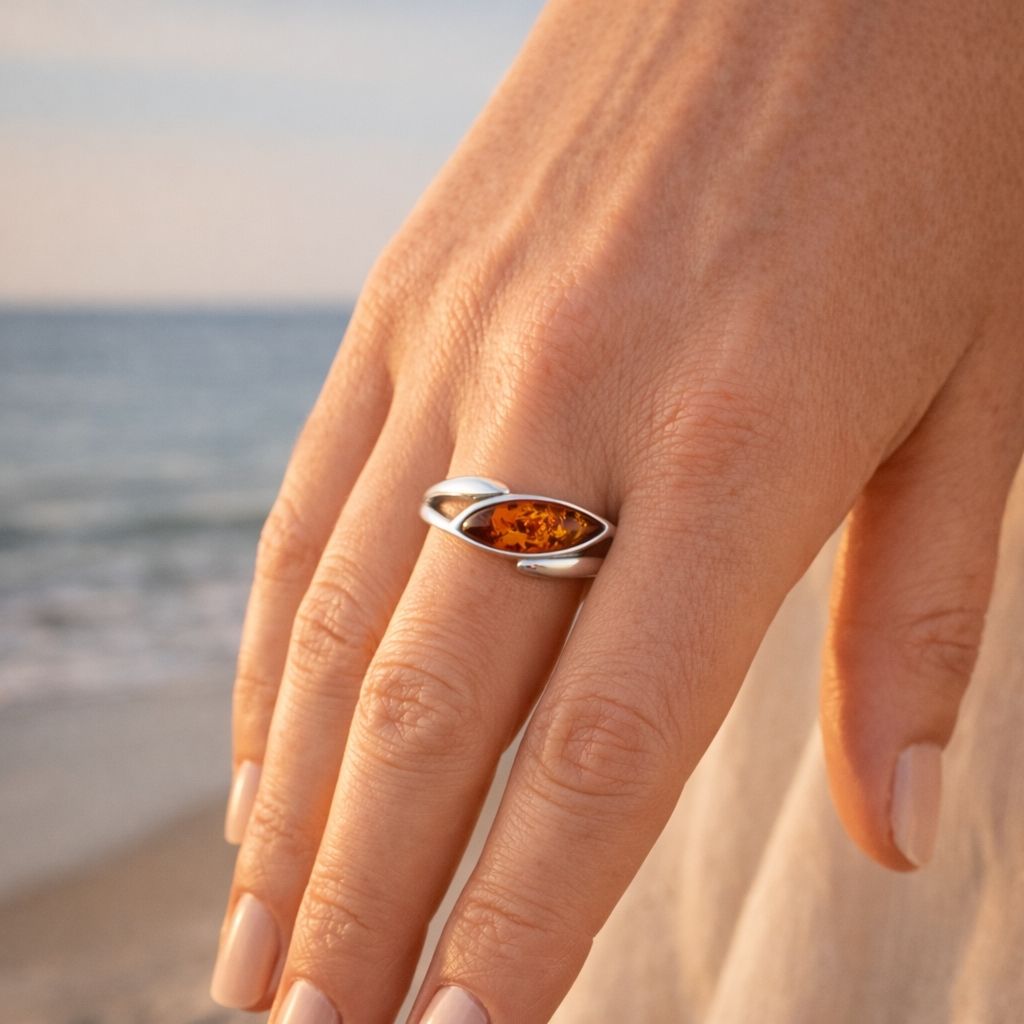 Warum stellt dieser Ring Bernstein Silber 925 rhodiniert „Balans” die ideale Wahl für Ihre persönliche Schmucksammlung dar? Das hochwertige Silber 925 bildet eine stabile Basis, während die Veredelung mit Rhodium einen luxuriösen Glanz garantiert. Da das Metall anlaufgeschützt ist, bleibt die helle Optik über viele Jahre hinweg ohne mühsame Reinigung erhalten. Der echte Ostseebernstein überzeugt durch seinen warmen Cognac-Ton, der wunderbar mit dem kühlen Silber harmoniert. Ein Ring mit Bernstein und Silber 925 ist daher ein langlebiges Accessoire, welches Qualität und Ästhetik perfekt vereint.