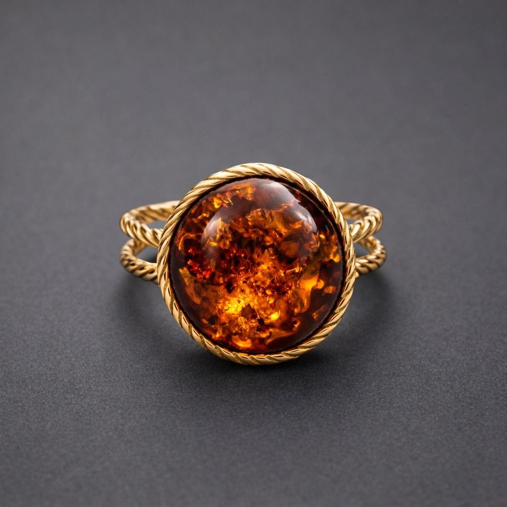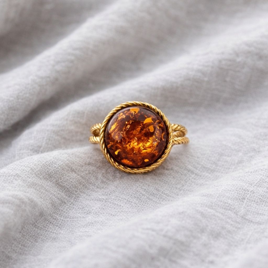 Strahlender Ring Silber 925 vergoldet Bernstein: Warme Harmonie