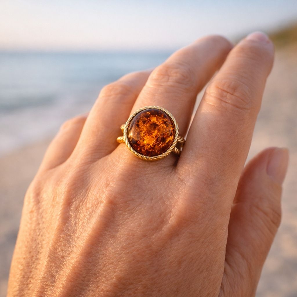 Warum stellt dieser Ring Silber 925 vergoldet Bernstein eine so hervorragende Wahl für anspruchsvolle Kundinnen dar? Die Basis bildet hochwertiges Silber 925, welches durch eine Schicht aus 24 Karat Gold seine luxuriöse Optik erhält. Dank dieser edlen Veredelung glänzt das Schmuckstück besonders tief und harmoniert perfekt mit dem warmen Ton des Bernsteins. Ein vergoldeter Silberring mit Bernstein bietet Ihnen zudem die Beständigkeit von Echtschmuck sowie eine wunderbar glatte Oberfläche. Der echte Ostseebernstein ist ein fossiles Harz und somit ein wertvolles Naturmaterial, welches über Millionen von Jahren entstanden ist.