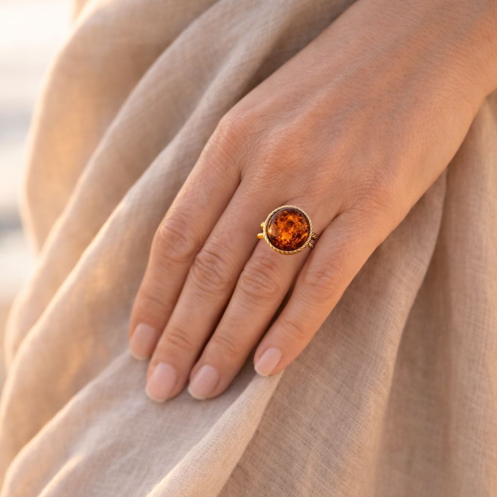 Das Modell „Geflecht“ steht für weit mehr als nur Dekoration, denn es symbolisiert die untrennbare Verbindung zur Natur. Jeder Ring Silber 925 vergoldet Bernstein trägt einen zentral gefassten Stein, der als Symbol für Wärme und innere Energie gilt. Die geflochtene Struktur der Ringschiene verleiht dem Design einen handwerklichen Charakter und sorgt für eine interessante optische Tiefe. Da ein Ring mit Bernstein immer ein absolutes Unikat ist, besitzen Sie ein Schmuckstück mit einer ganz eigenen Geschichte. Dieses Modell ist daher perfekt für Frauen, die ausdrucksstarke Accessoires mit einer tieferen, emotionalen Bedeutung suchen.